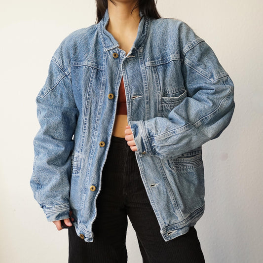 Vintage 80s Denim jacket Size L-XL quilted lining