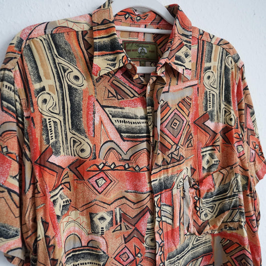 Vintage 80s Shirt men size L colorful vintage shirt