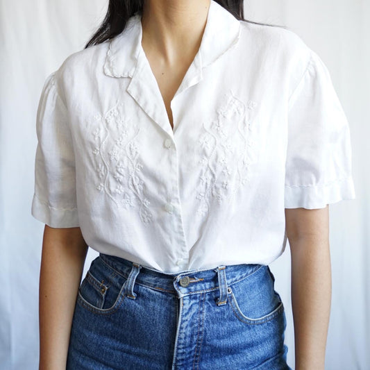 Vintage linen blouse size L embroidery