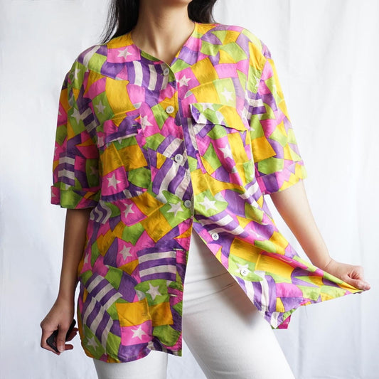 Vintage 80s colorful Shirt - size M-L