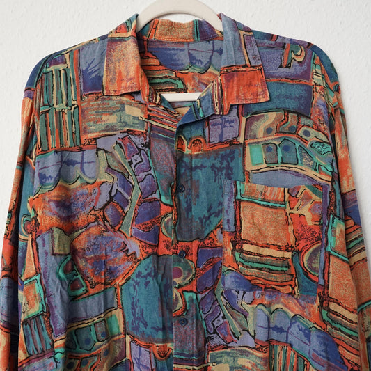 Vintage 80s Shirt men size XL colorful 80s shirt