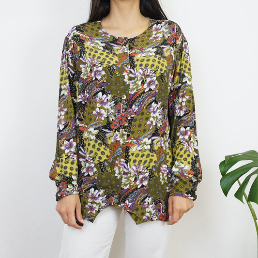 Vintage floral green Blouse size M-L