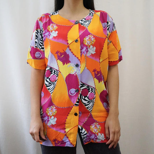Vintage colorful Shirt size M-L 80s baroque shirt