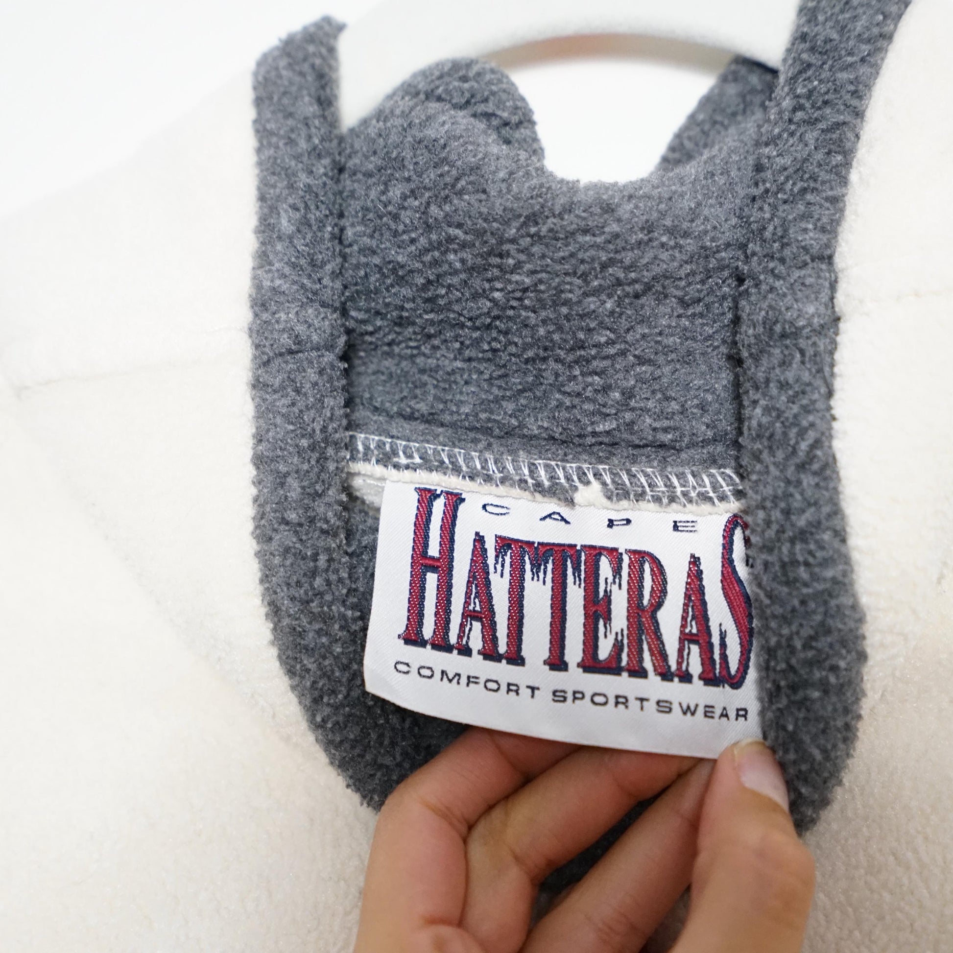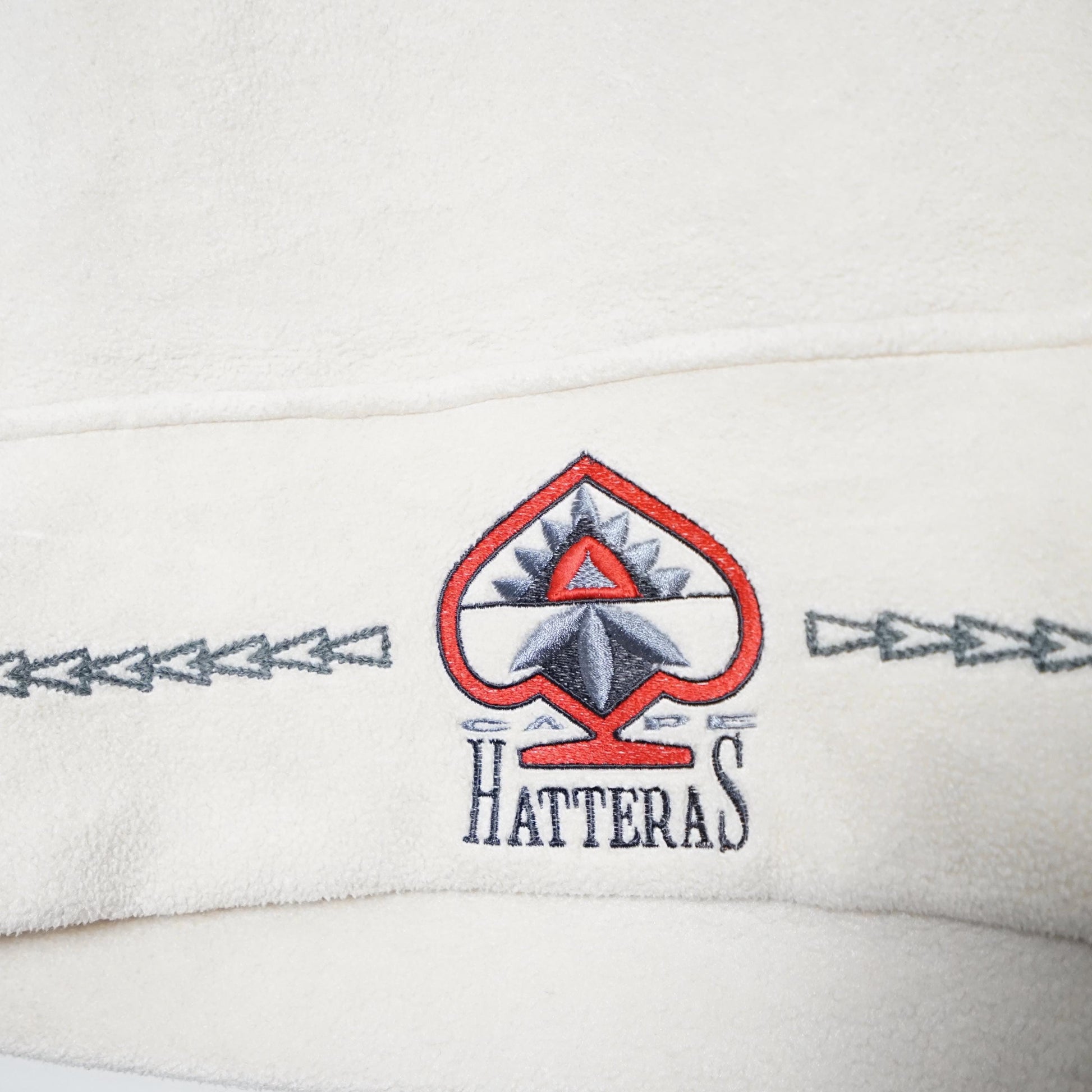 Vintage white cream fleece pullover with amazing embroidered geometric shapes and a turtle neck for extra warmth