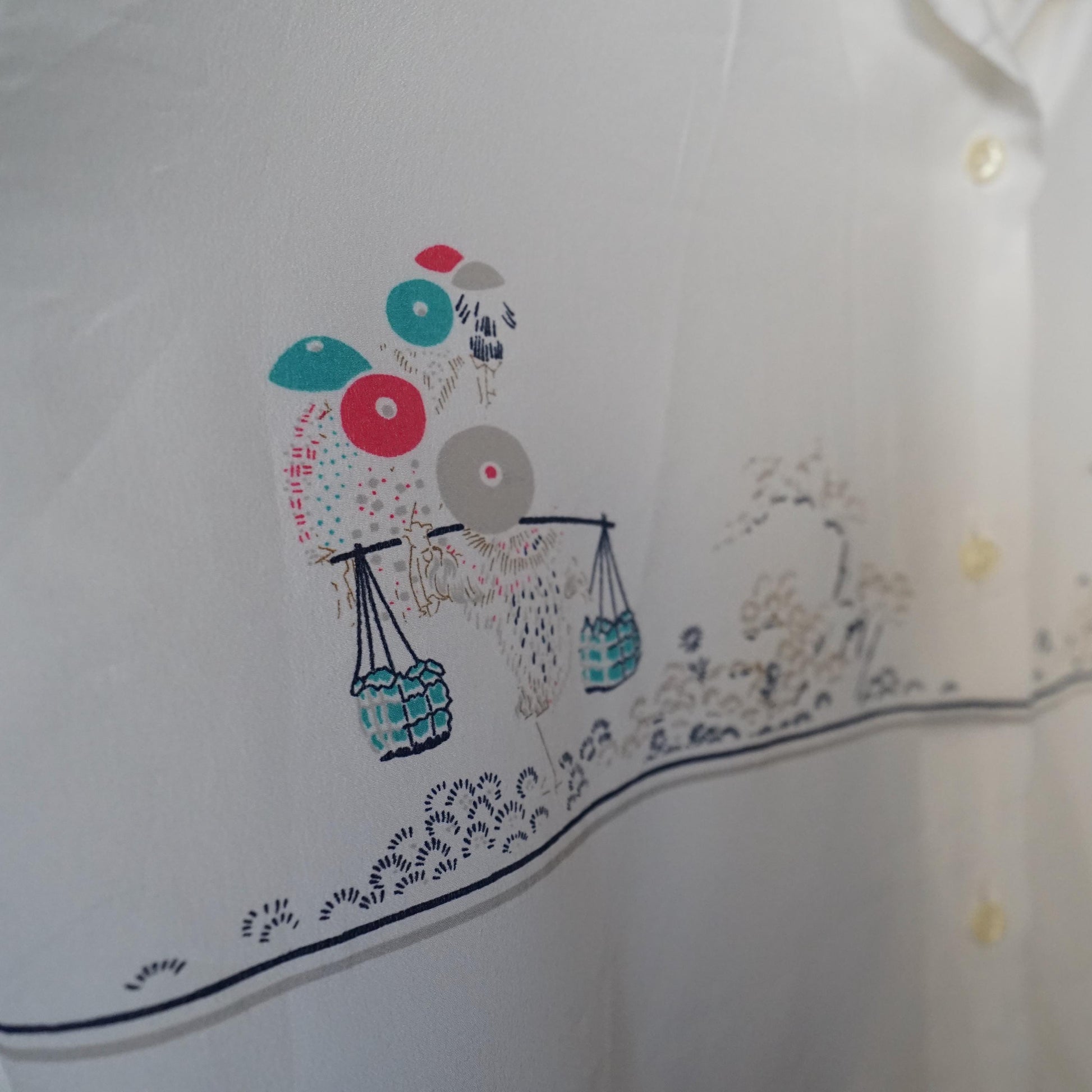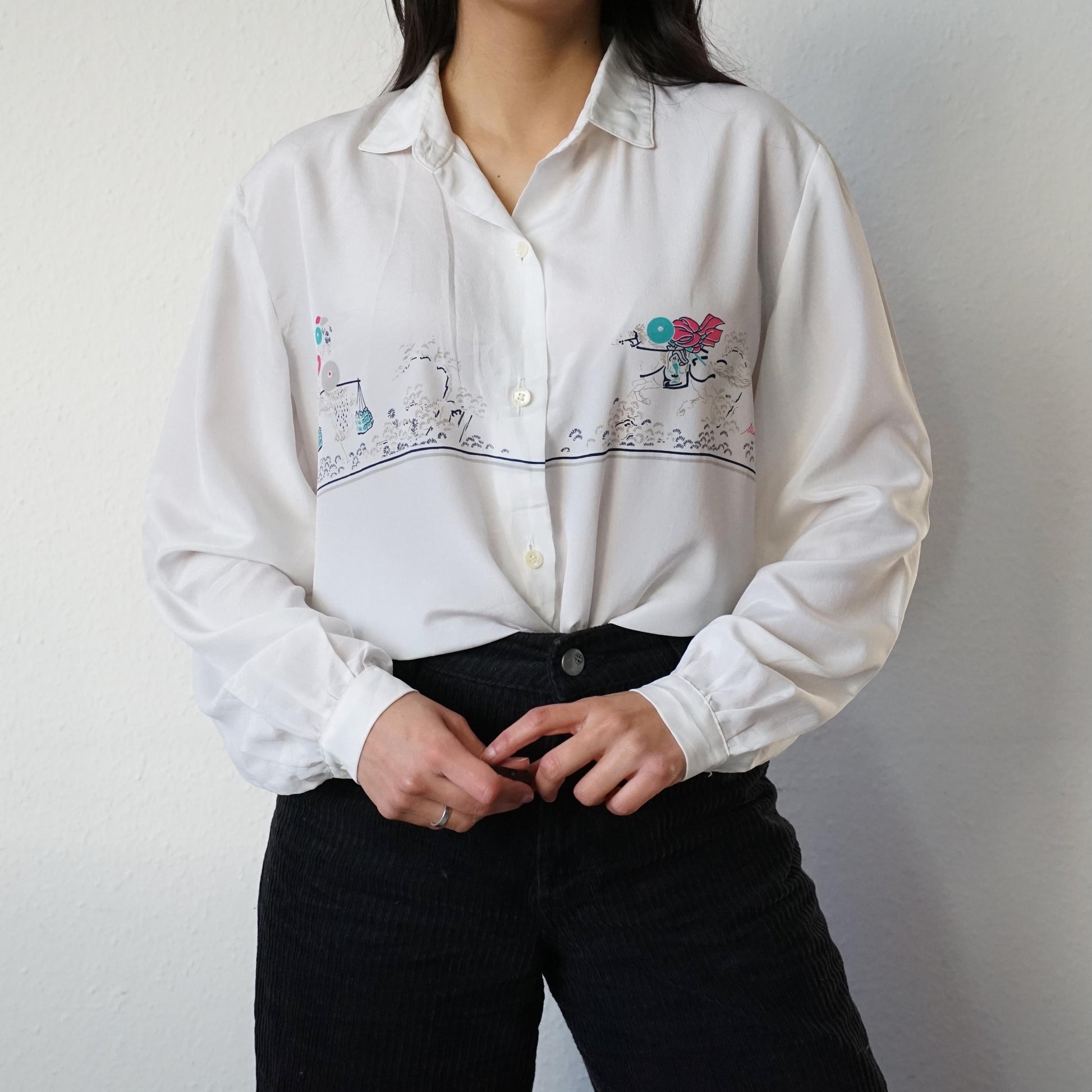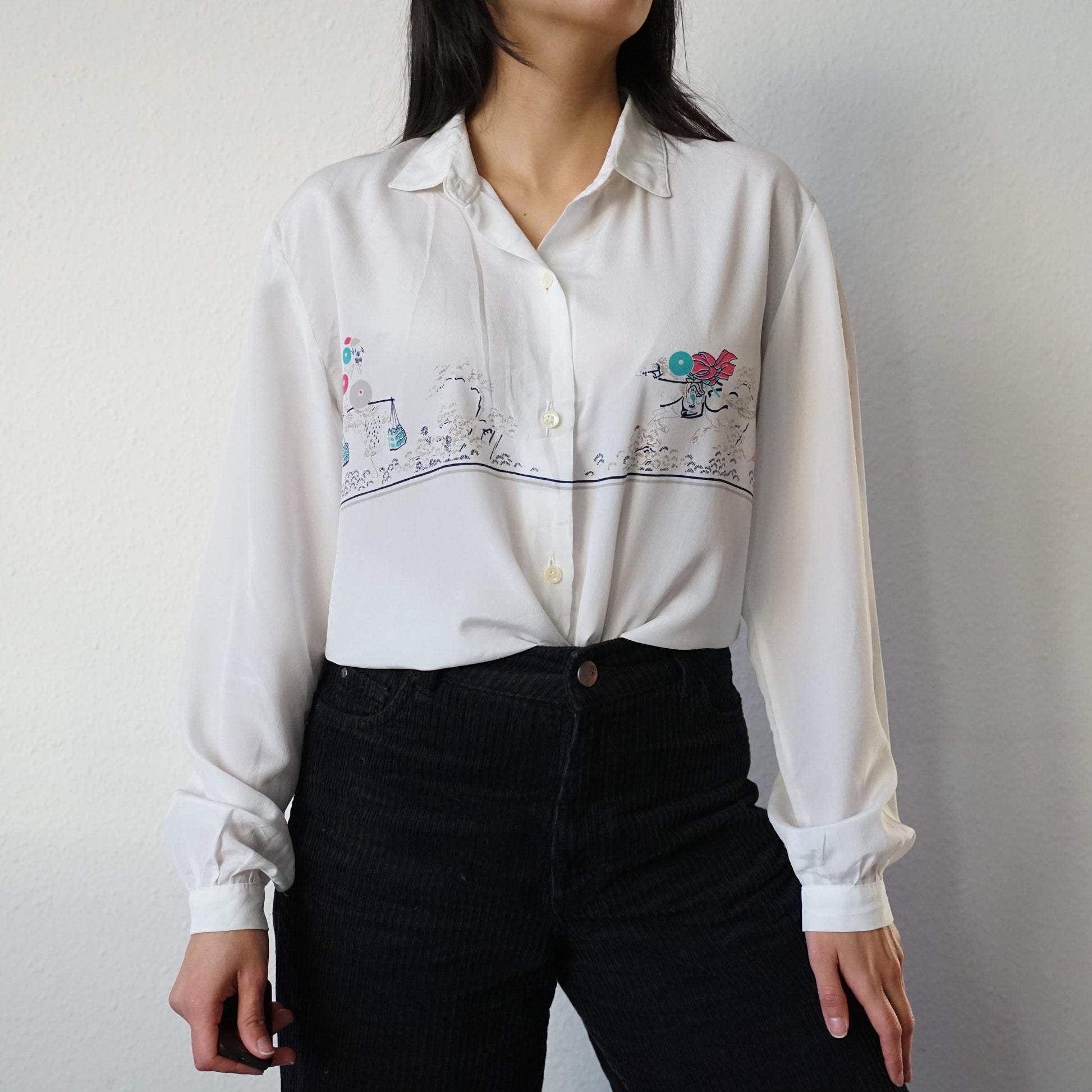 Vintage white long sleeved blouse with cute images on the front