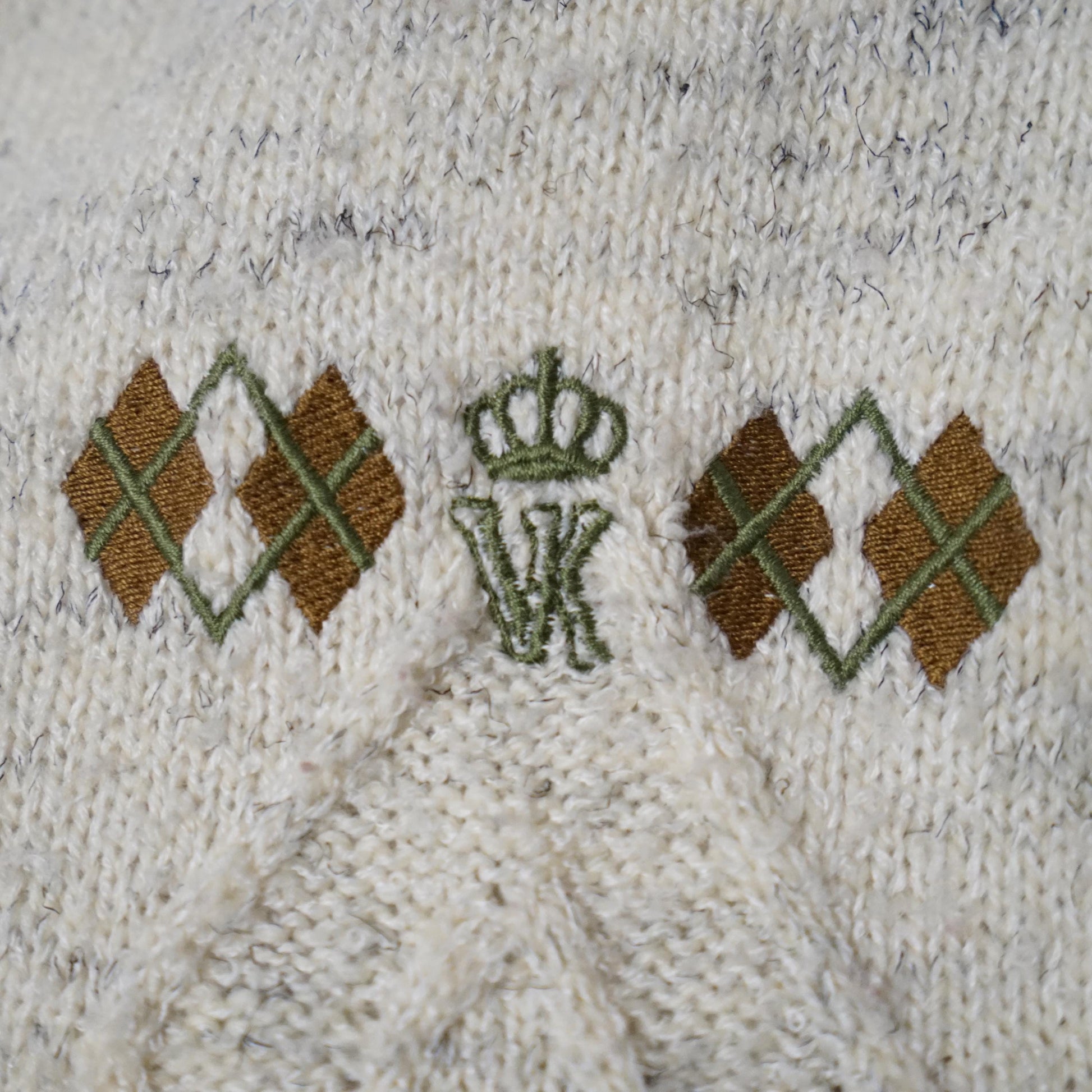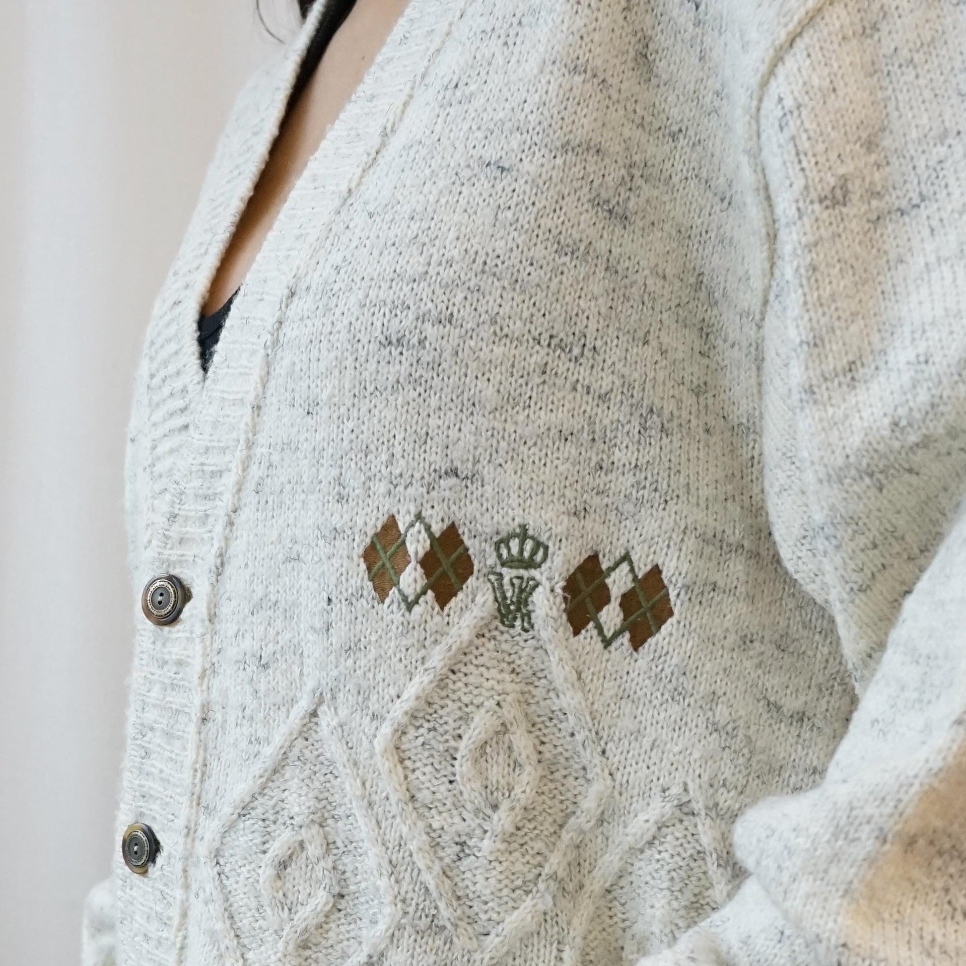Vintage cream beige cardigan from the 90s with embroidered details on chest