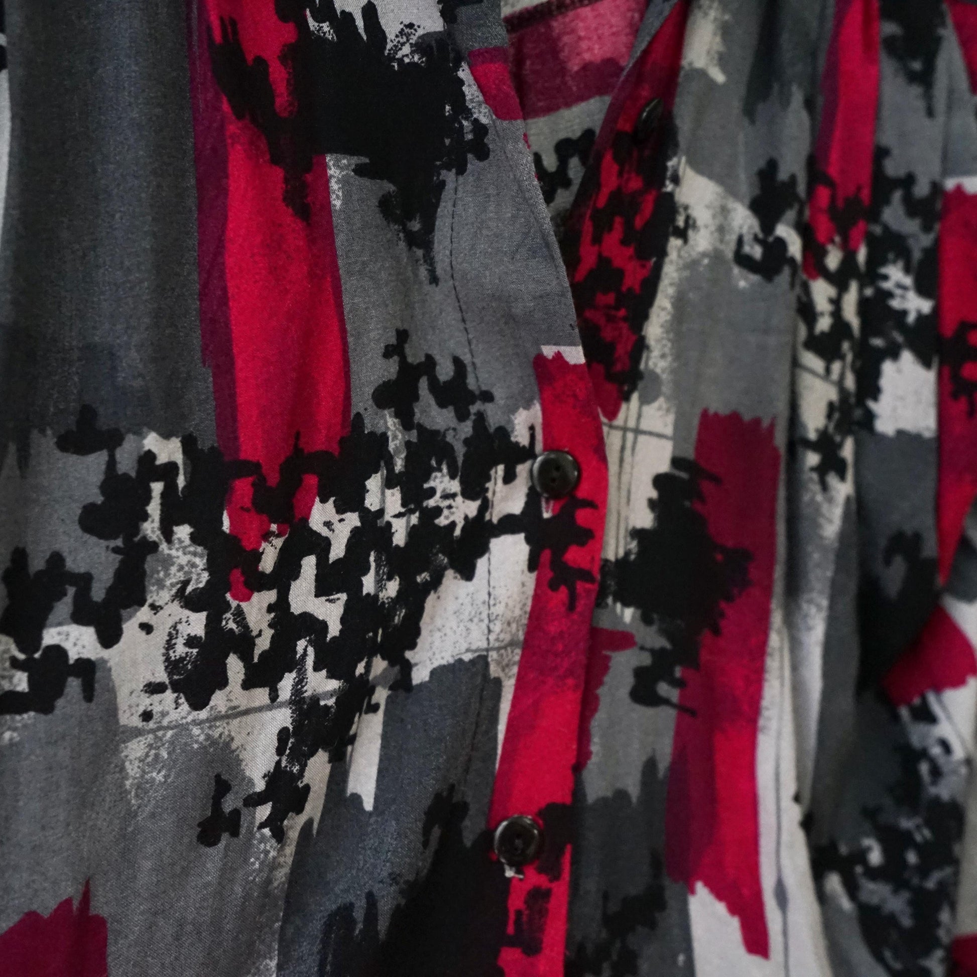 Vintage long sleeve shirt in a cool grunge abstract pattern in grey, black and pink