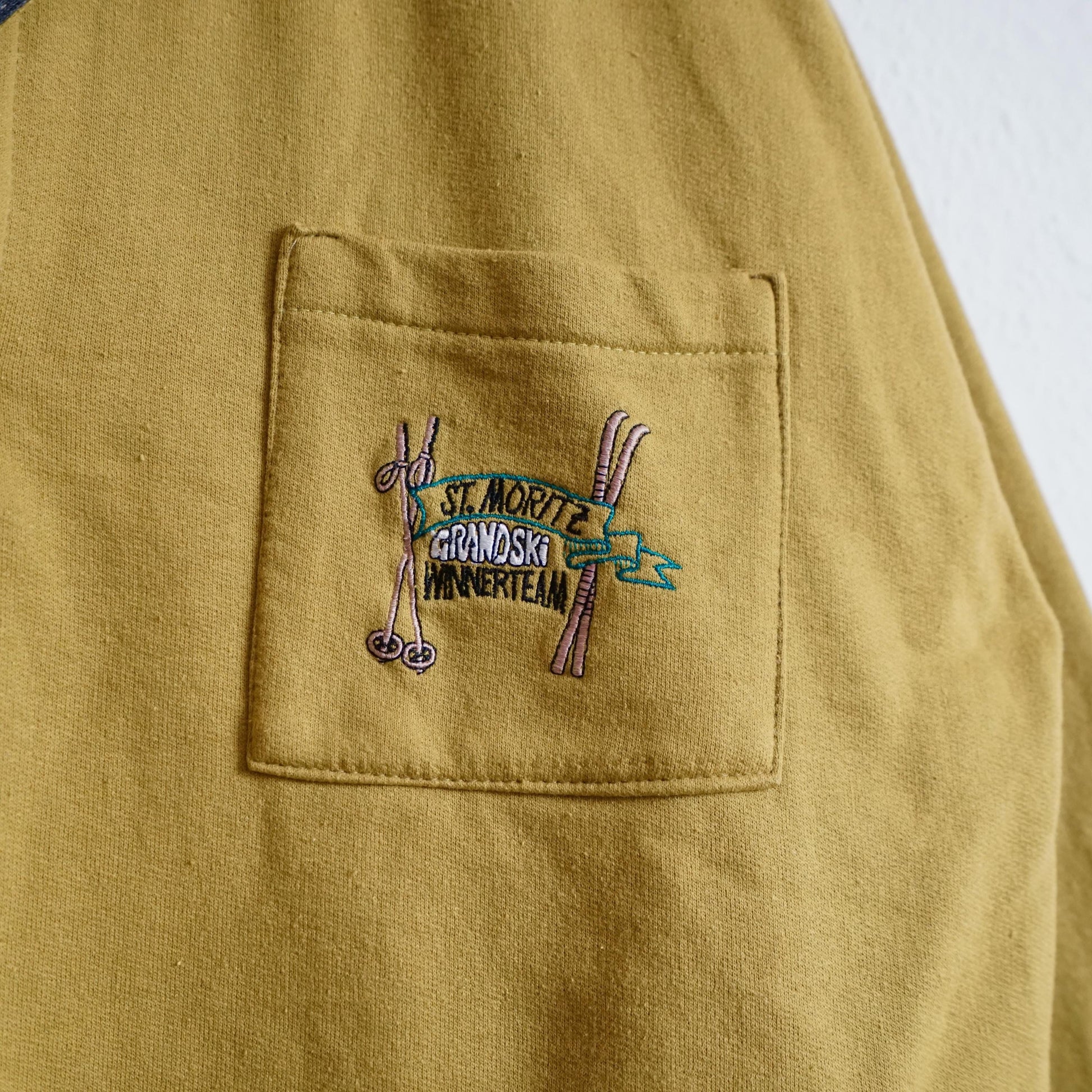 Vintage 90s sweater in olive green with grey details and skiing embroidery