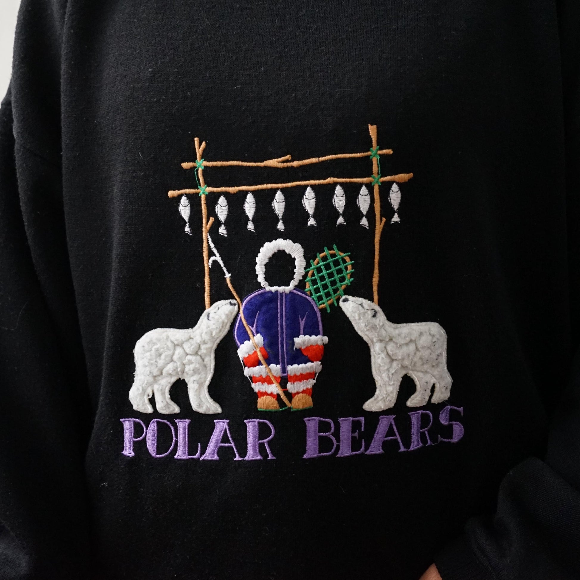 Vintage super cute 90s sweater in black with embroiedered polar bears and a human fishing