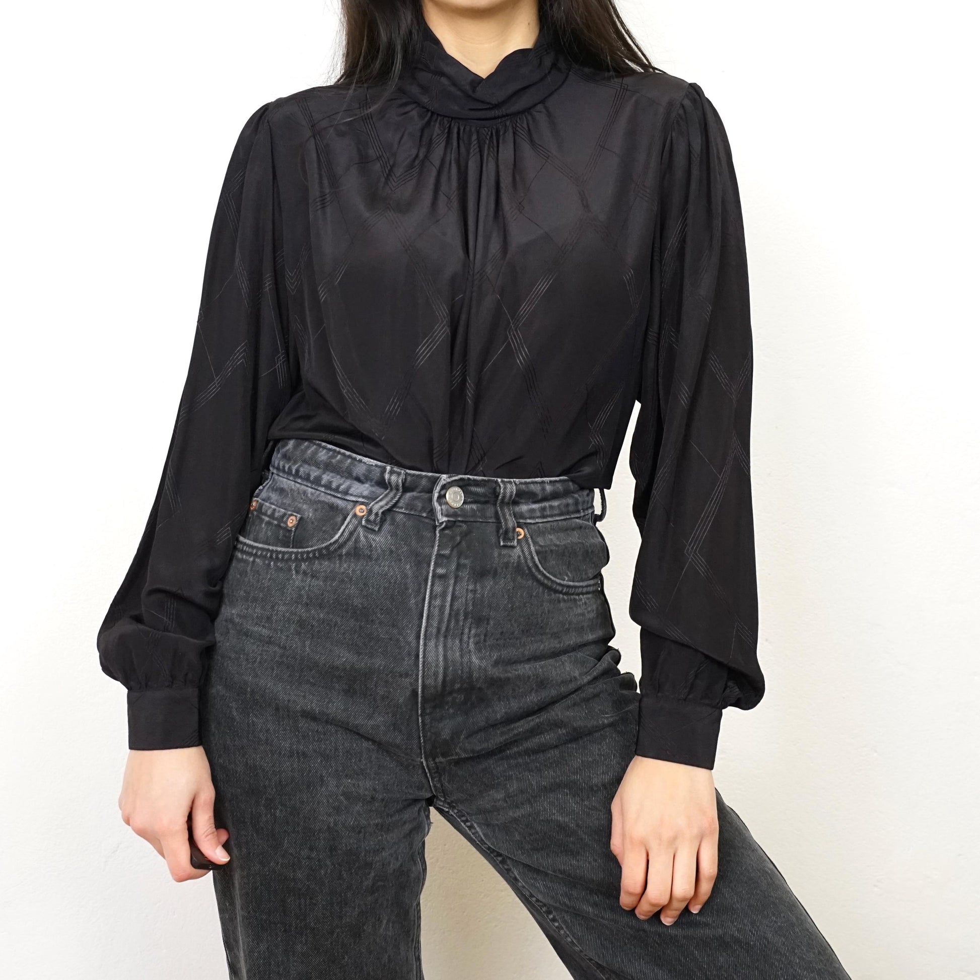 Vintage long sleeve black blouse with elegant neck and buttons on back