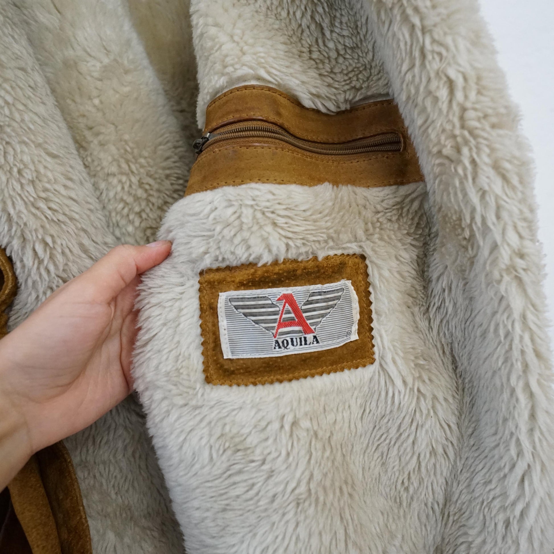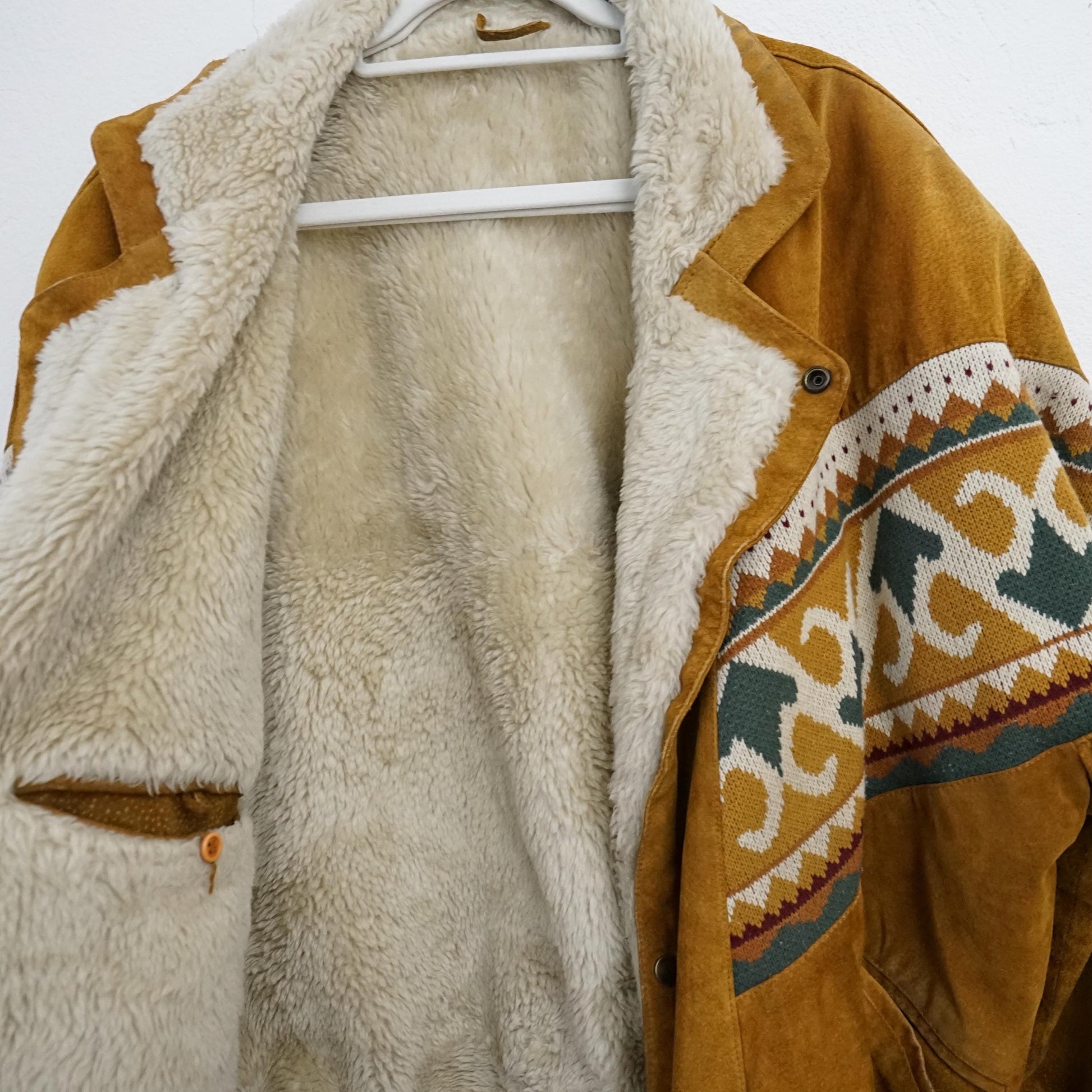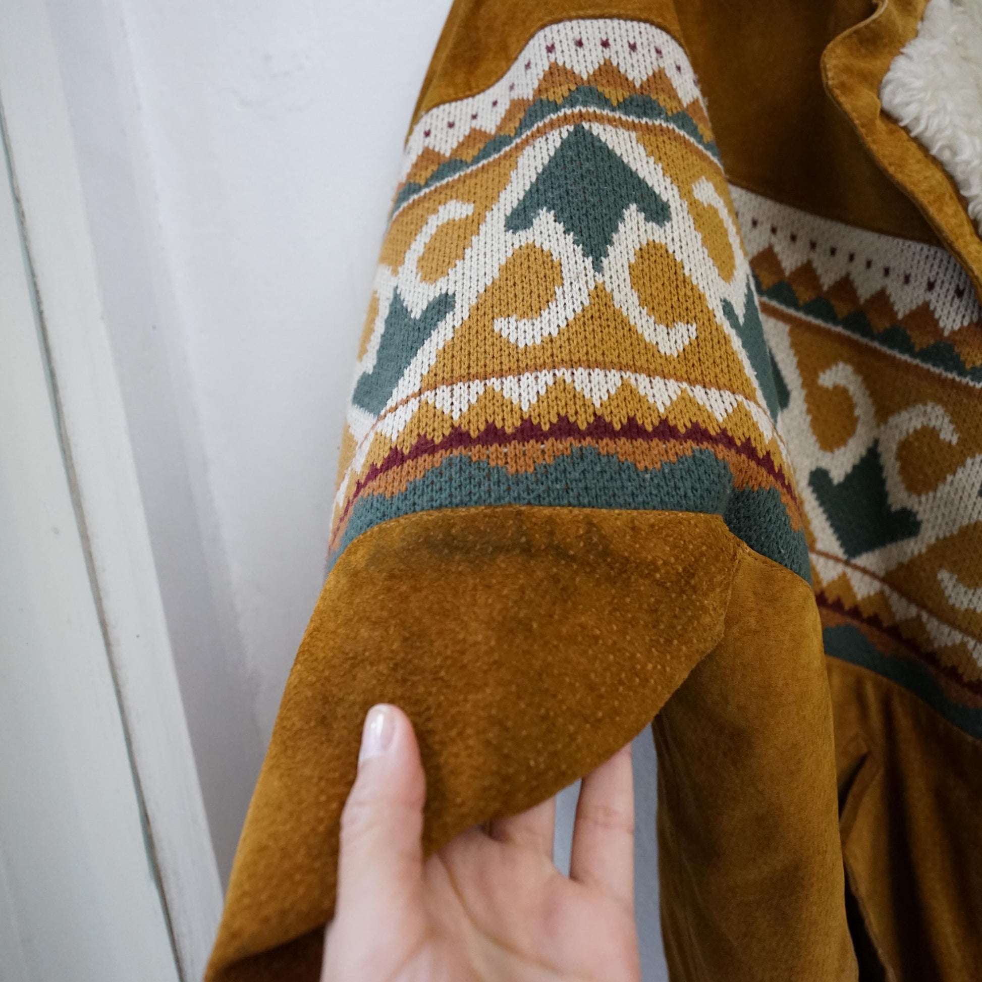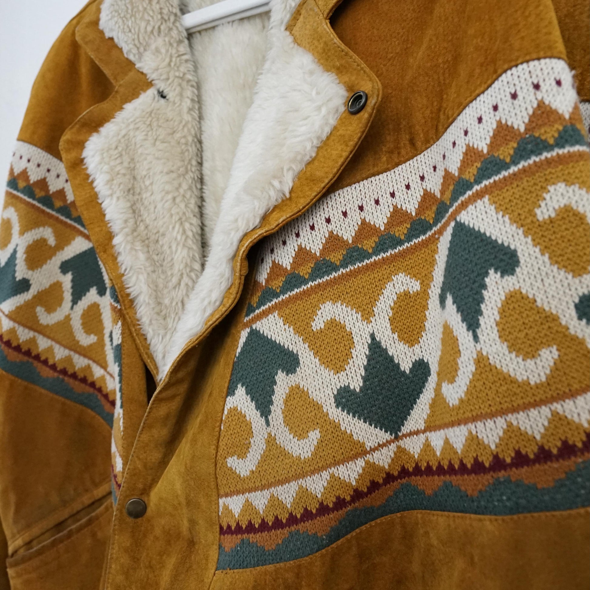 Vintage beautiful yellow suede bomber jacket with knitted details and super cozy teddy lining