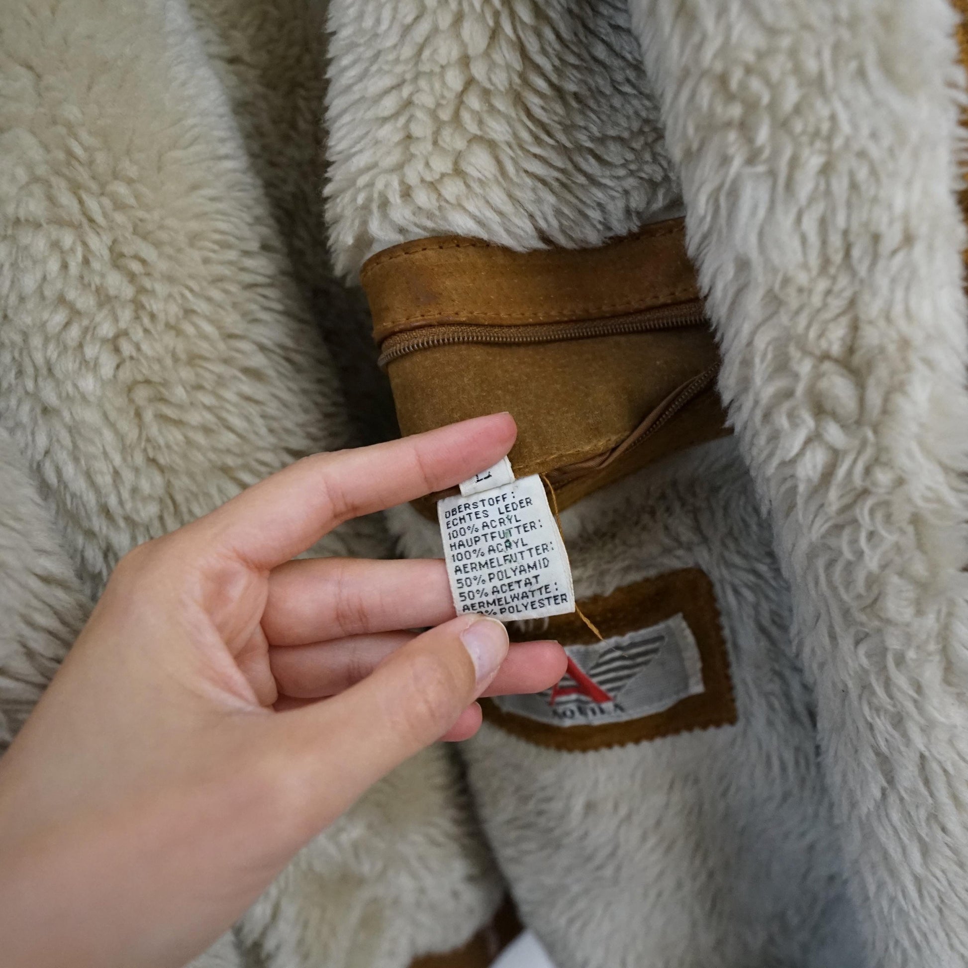 Vintage Leather Bomber Jacket men Size L Teddy lining