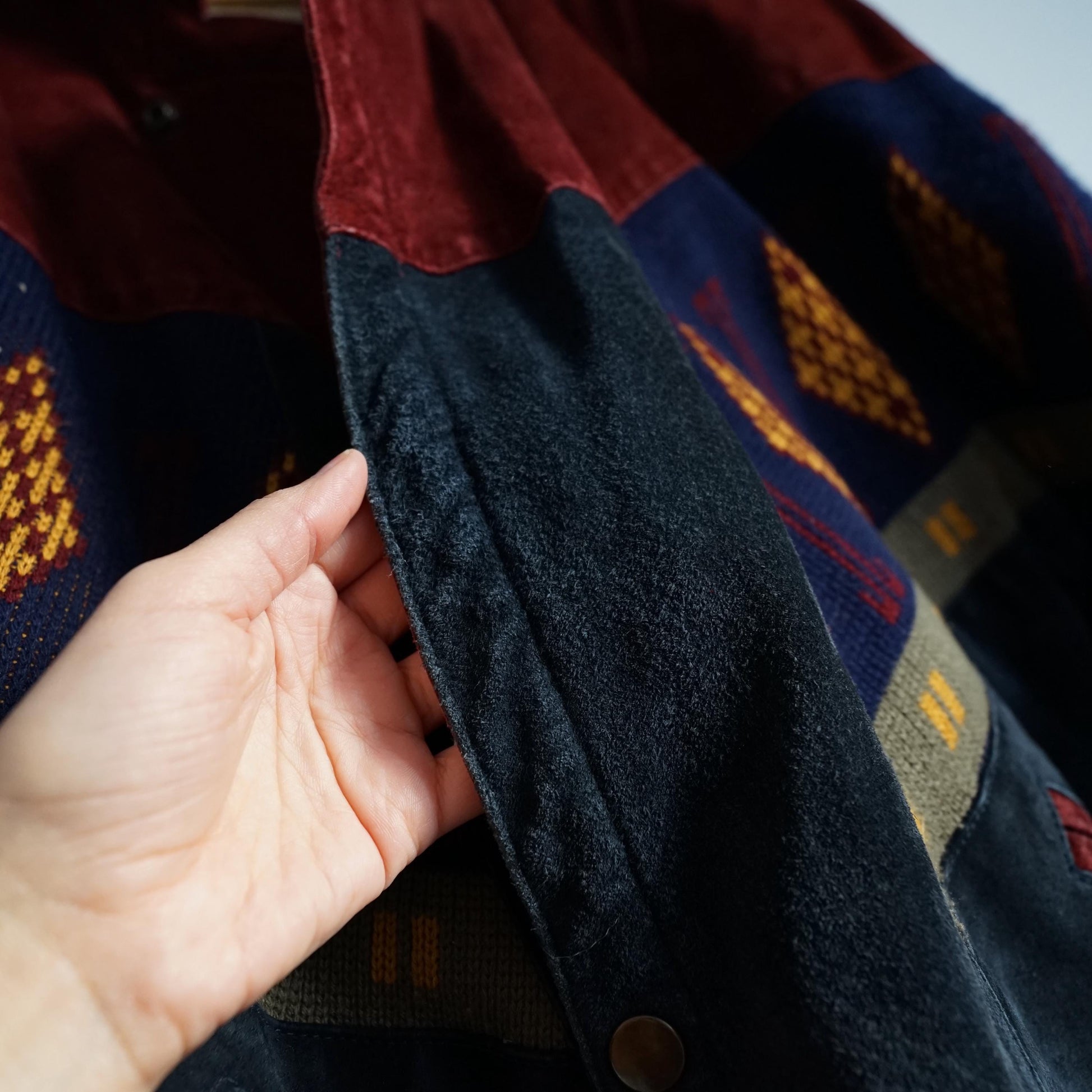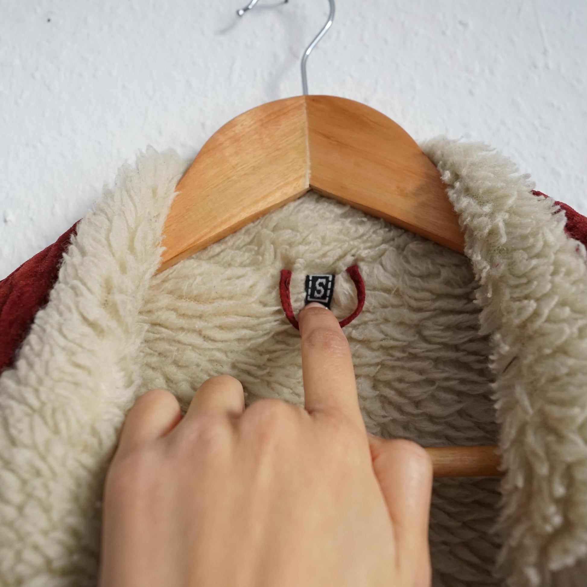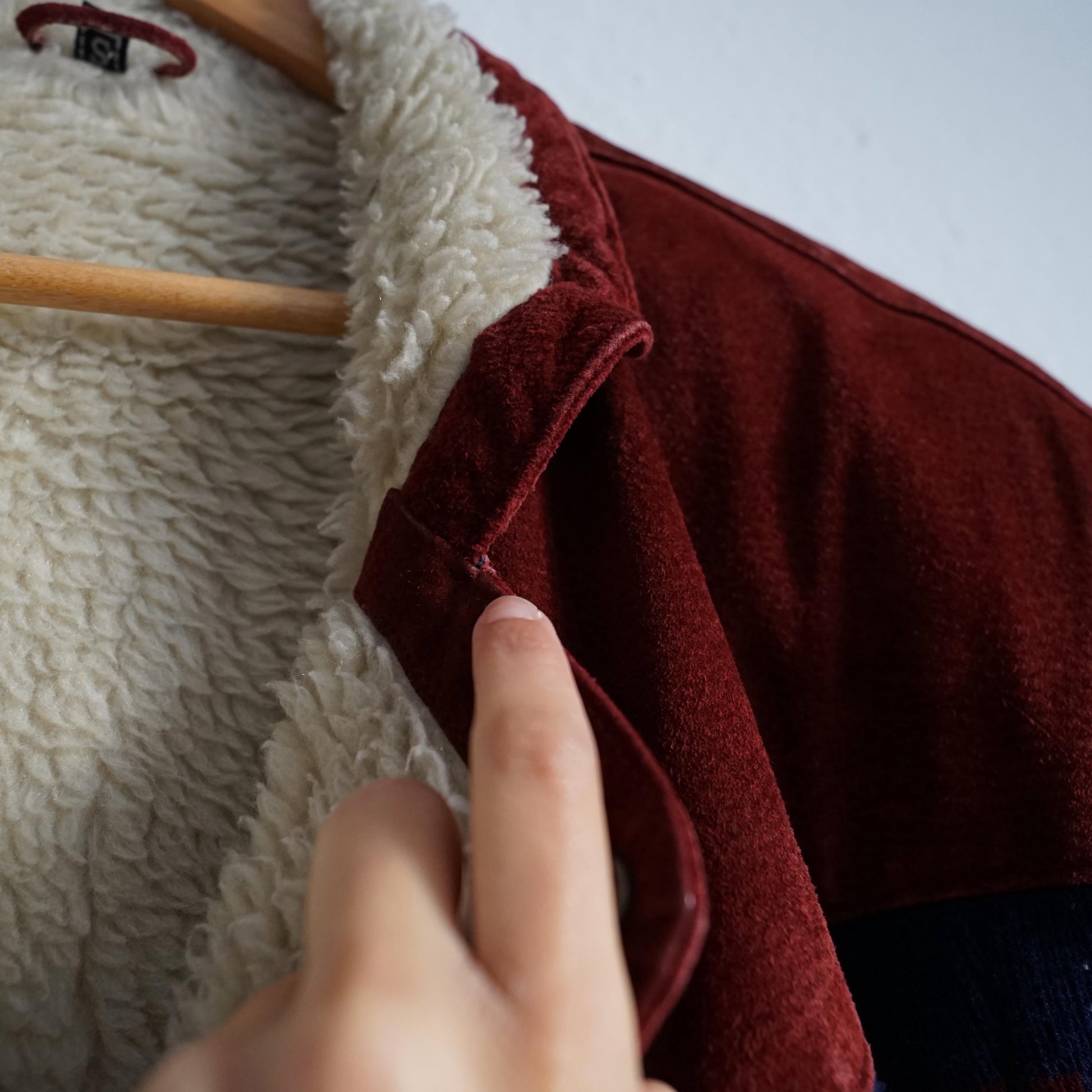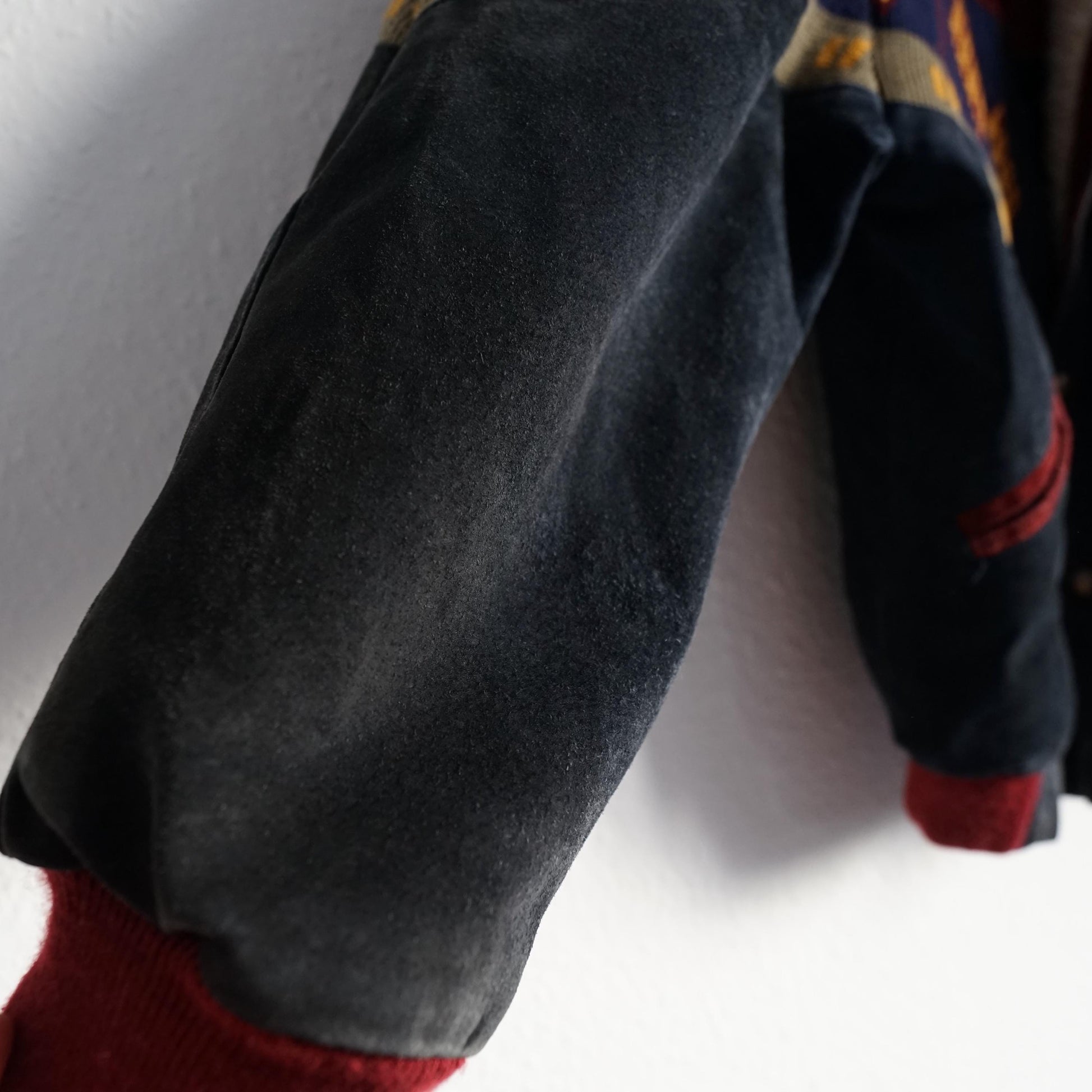 Vintage beautiful red and dark grey suede bomber jacket with cozy teddy lining