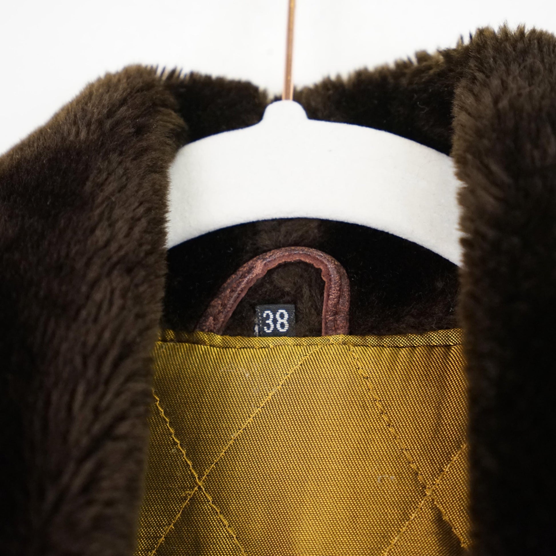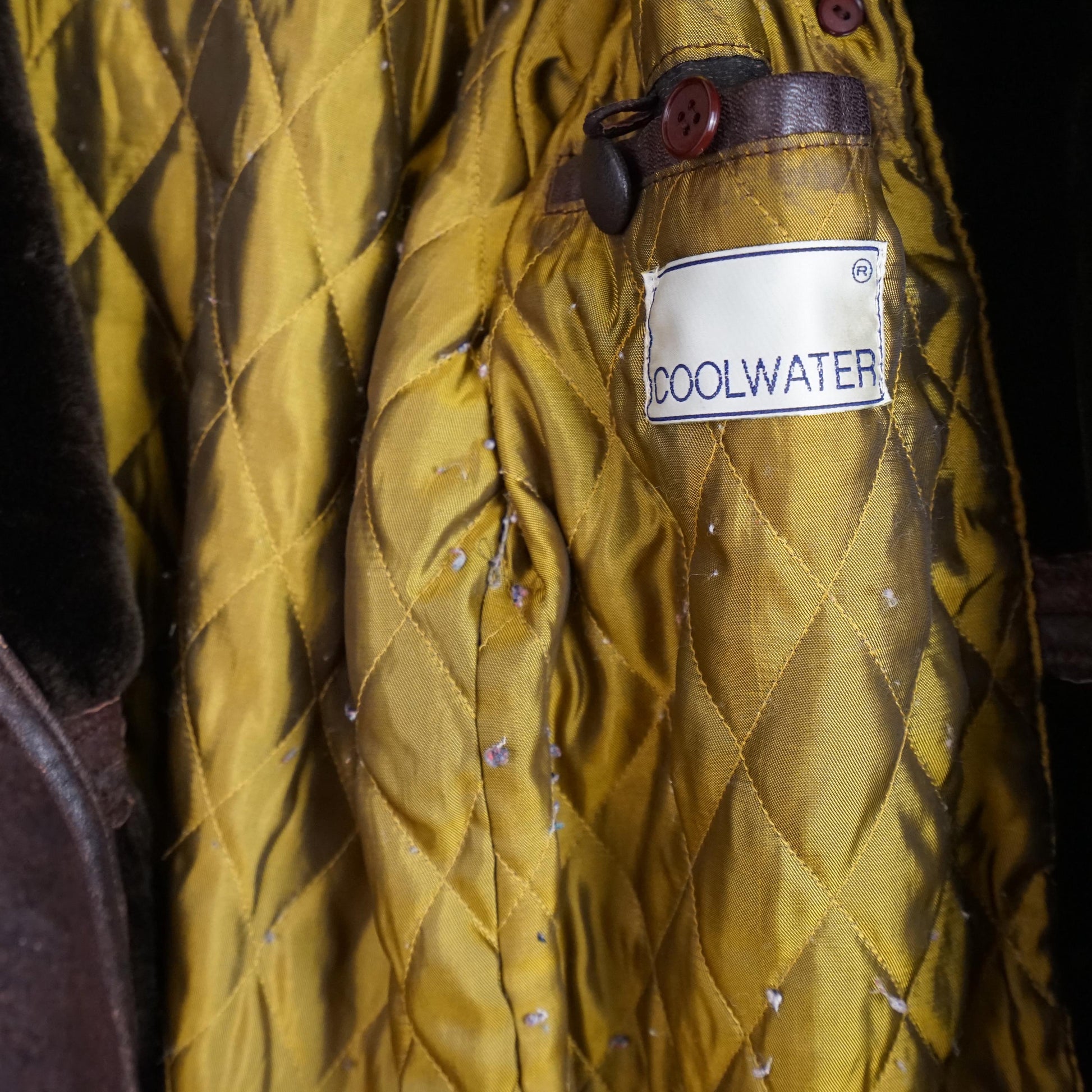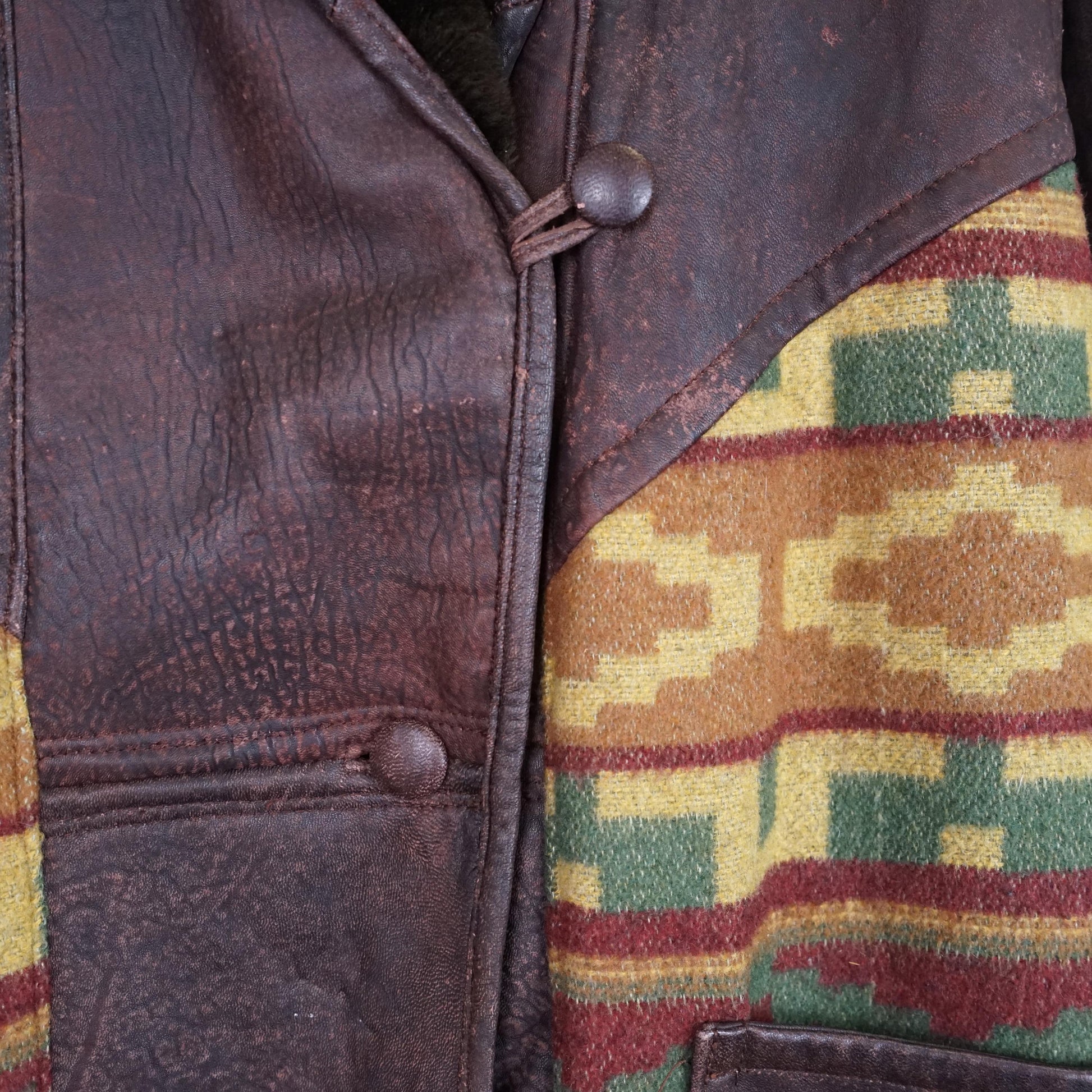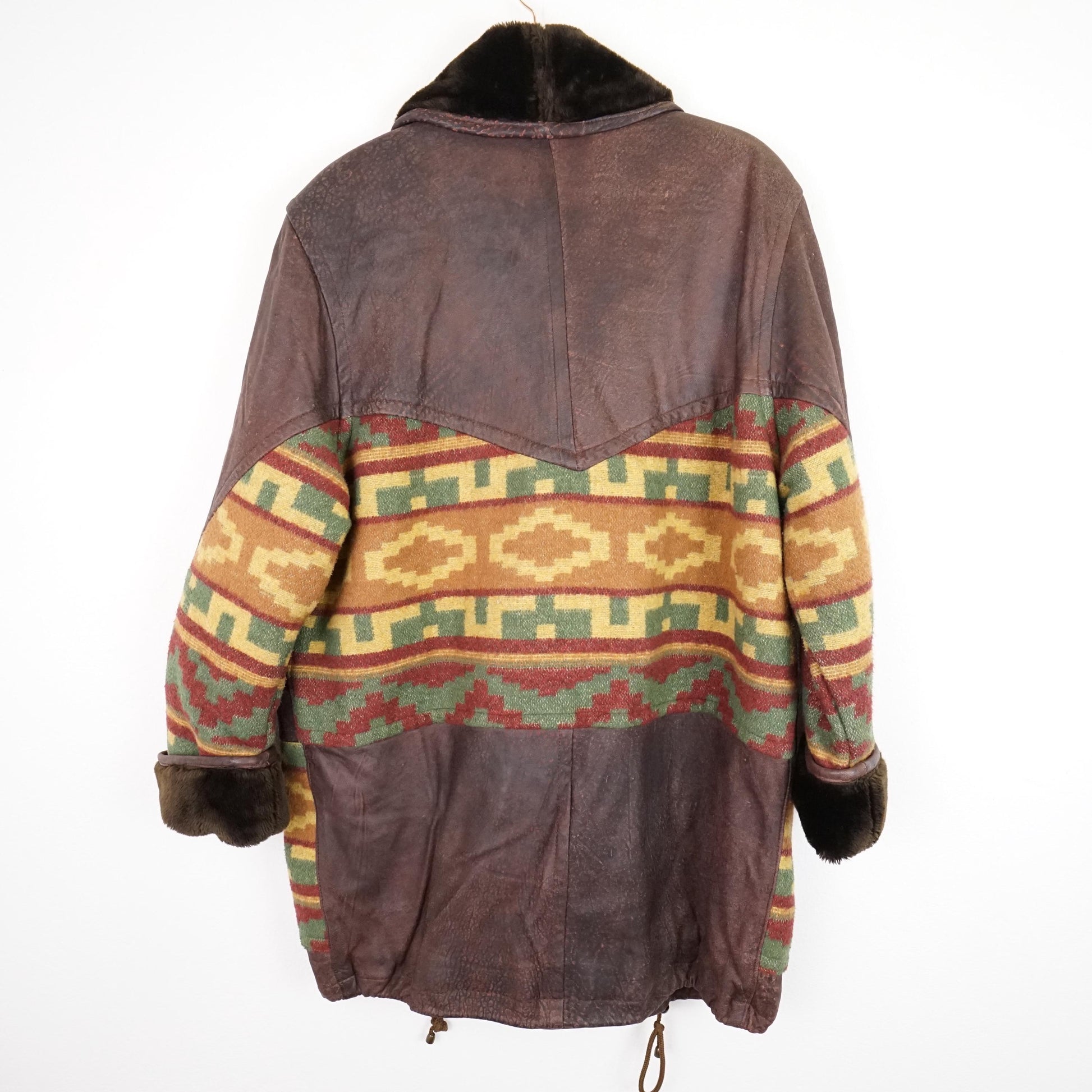 Beautiful and rare leather coat in brownish purple color with geometric pattern in wool and faux fur details
