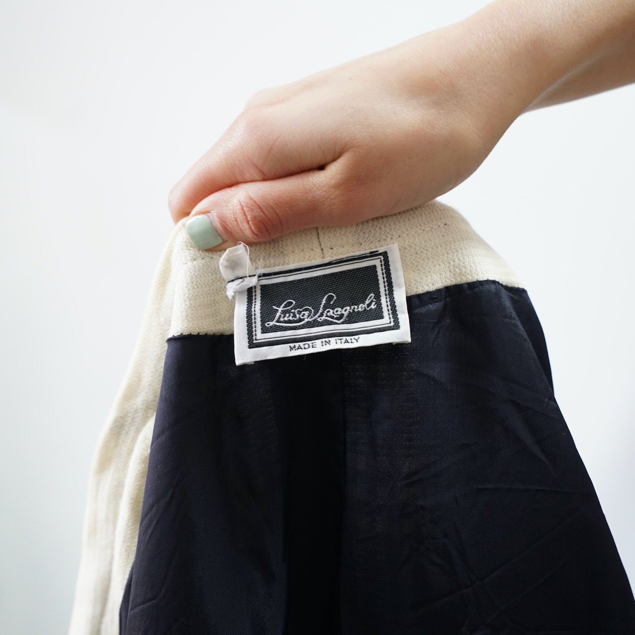 Amazing 80s vintage wool blazer in blue and white with golden colored buttons