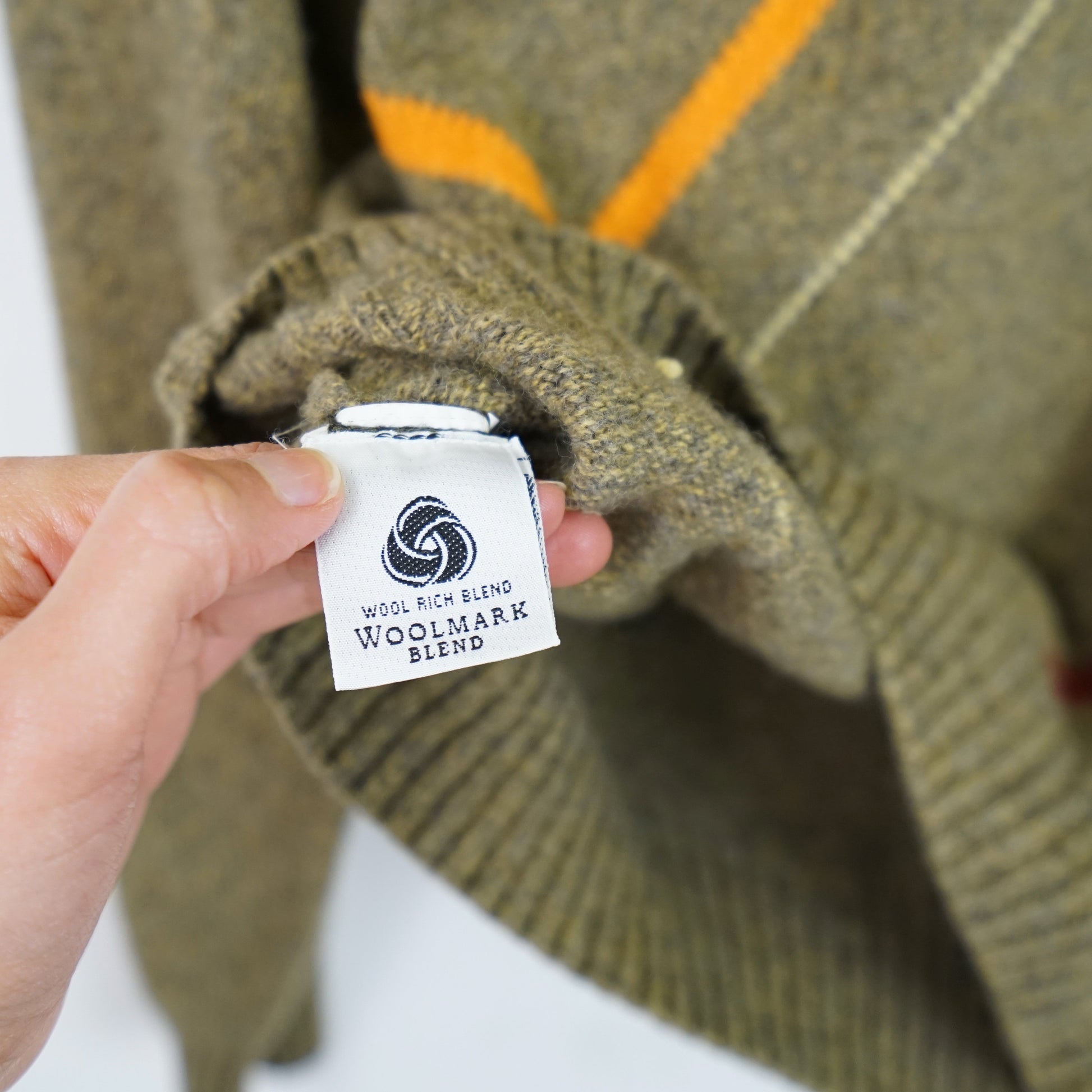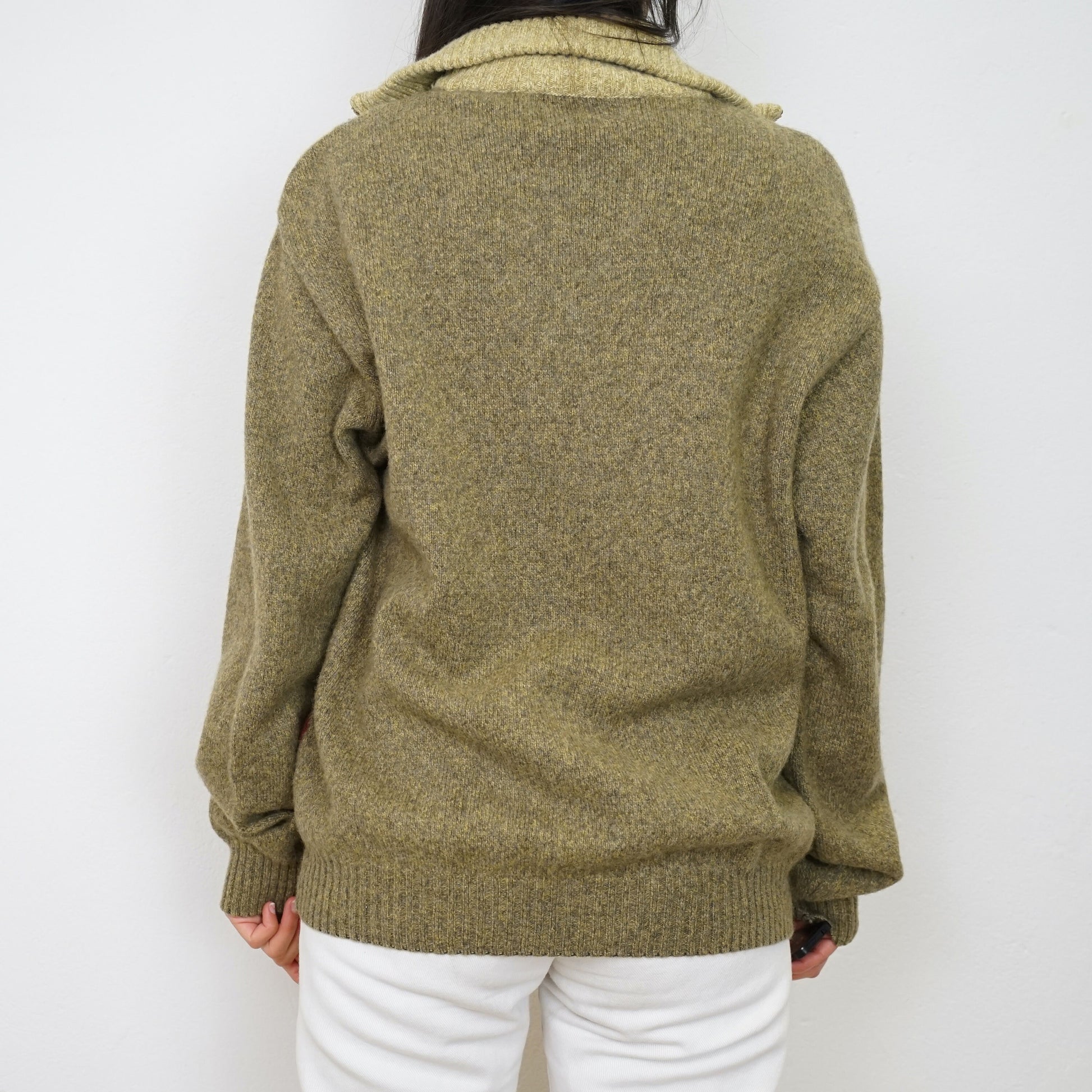 Vintage yellow green Pullover with quarter zip that can make it into a turtle neck