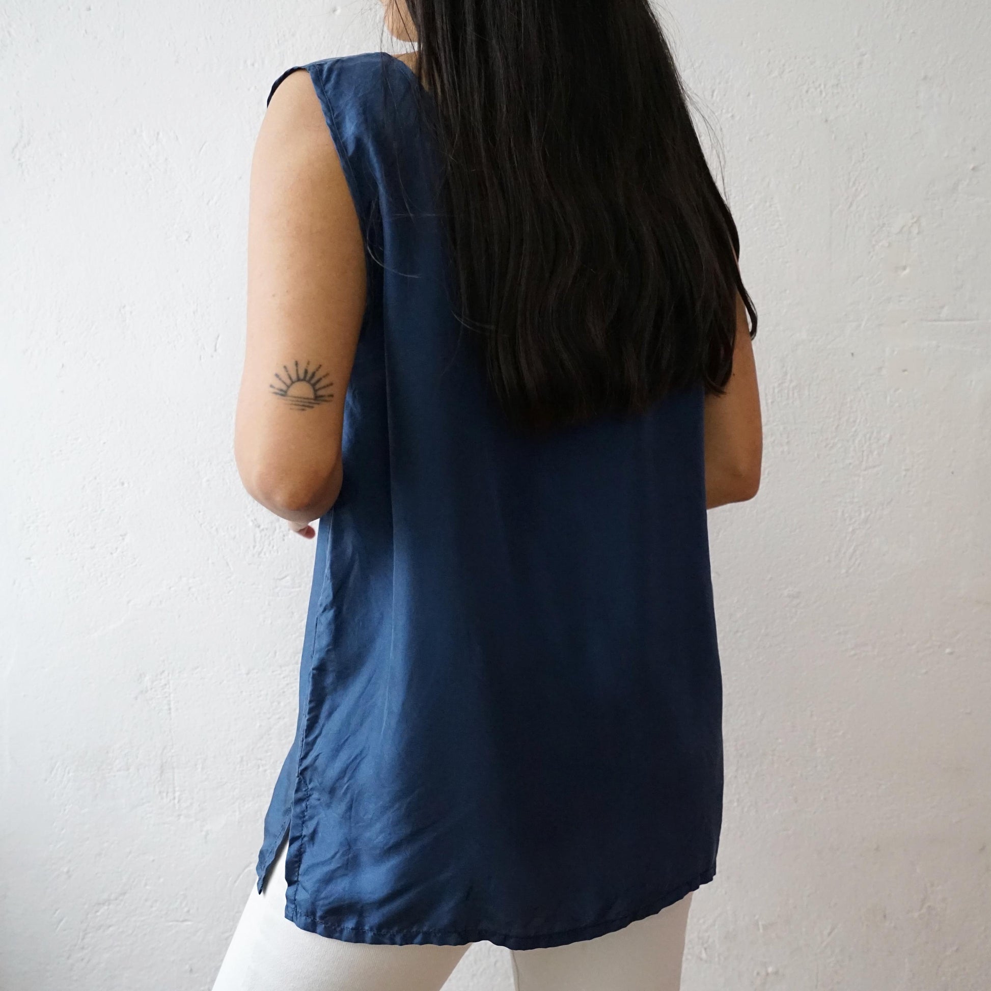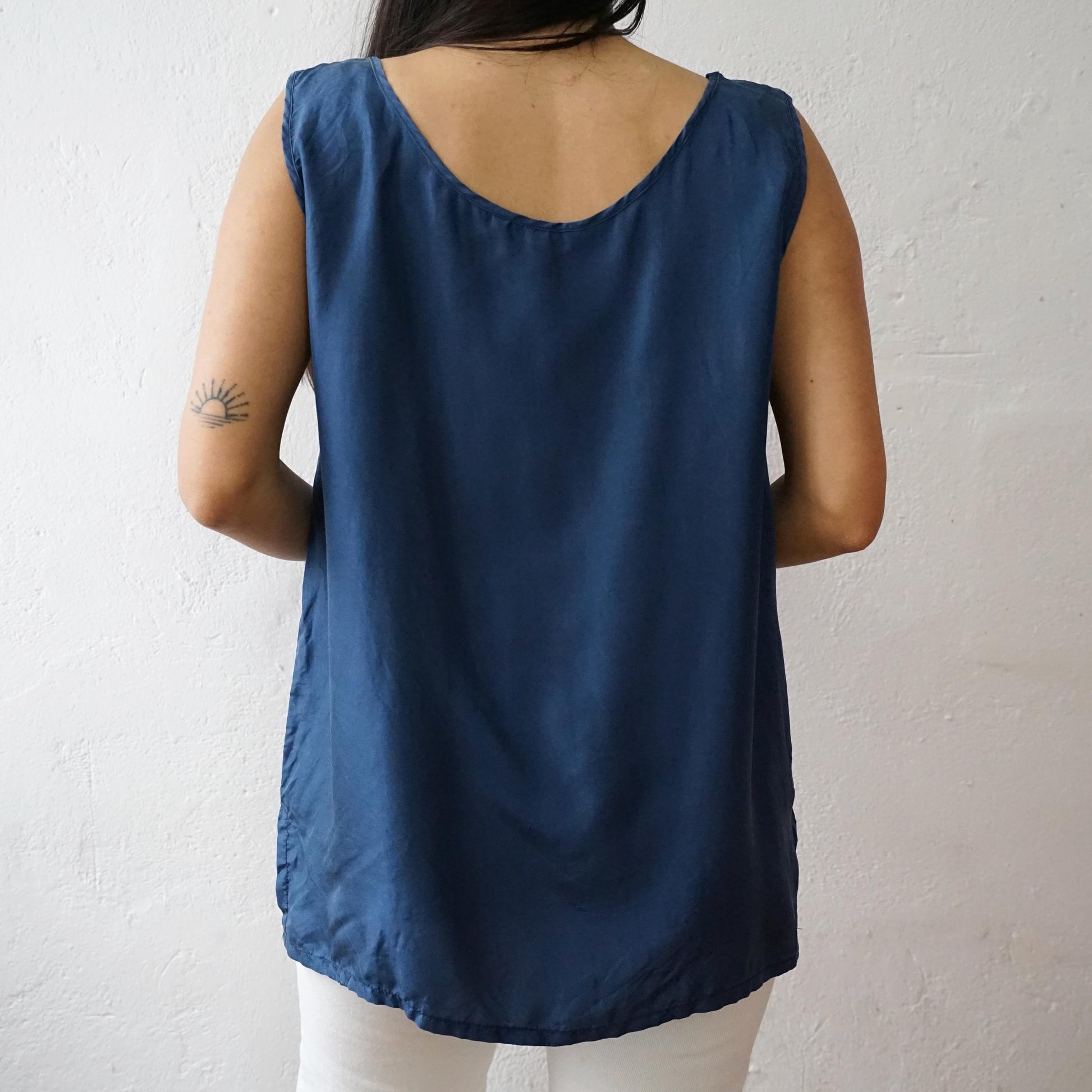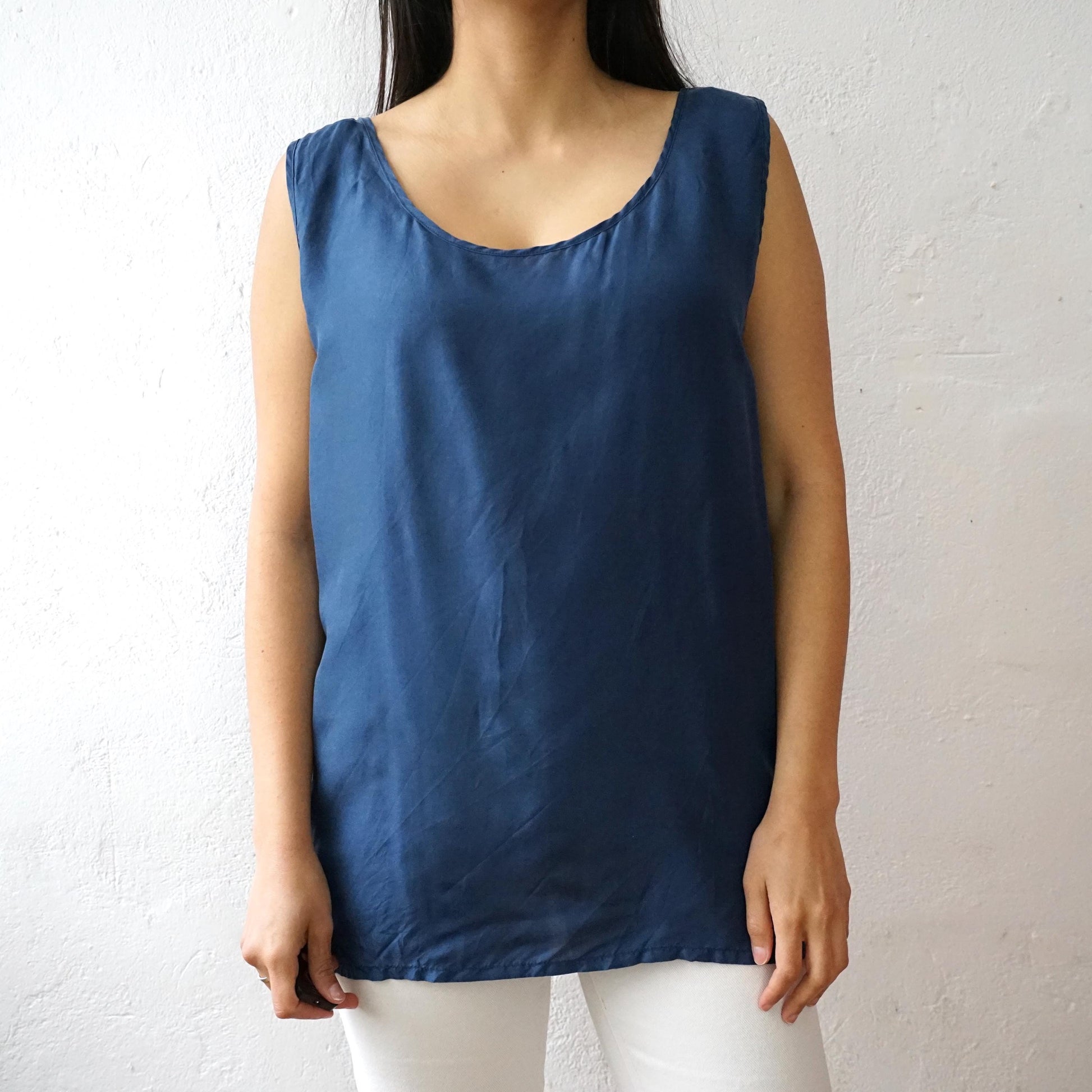 Vintage sleeveless blue top made out of 100% silk