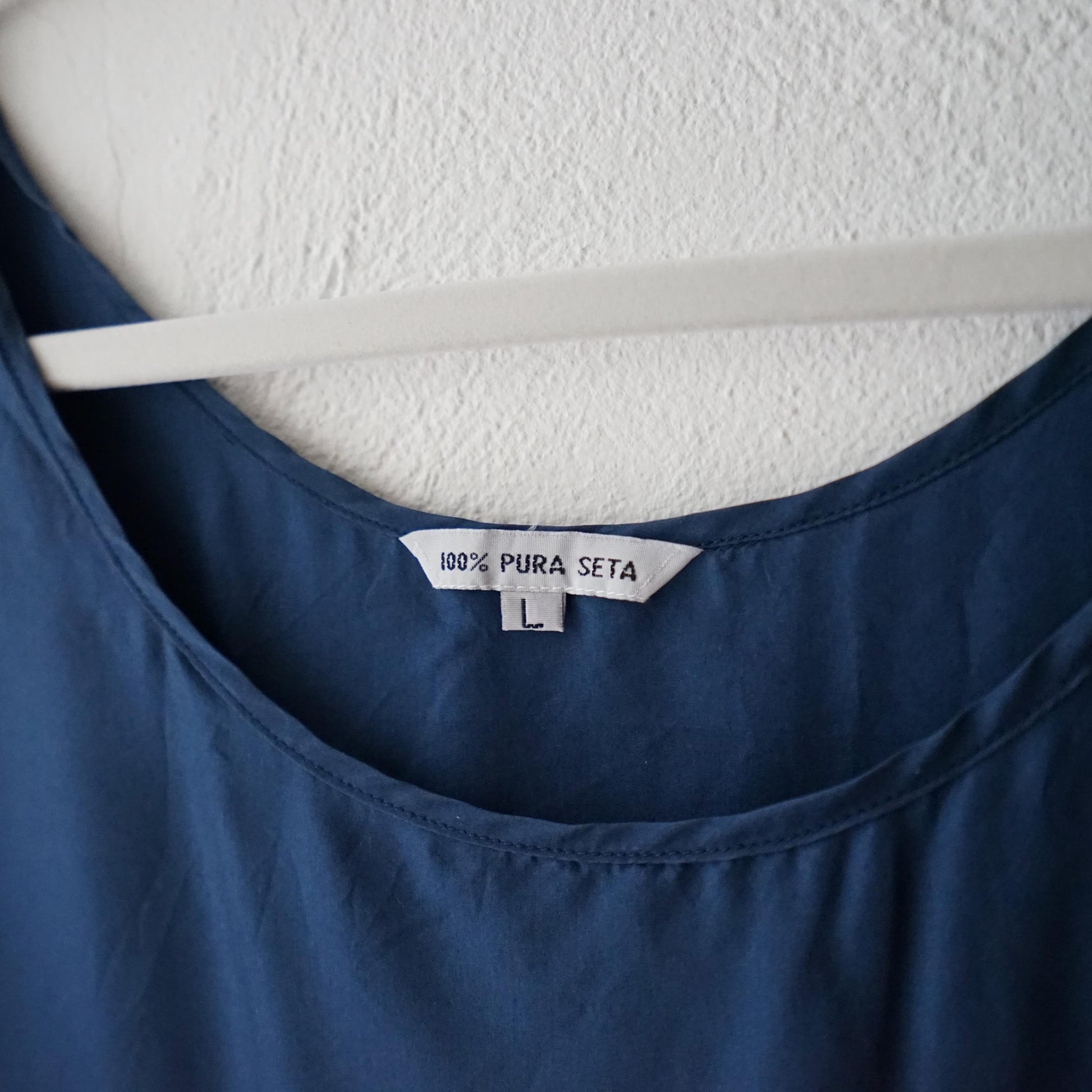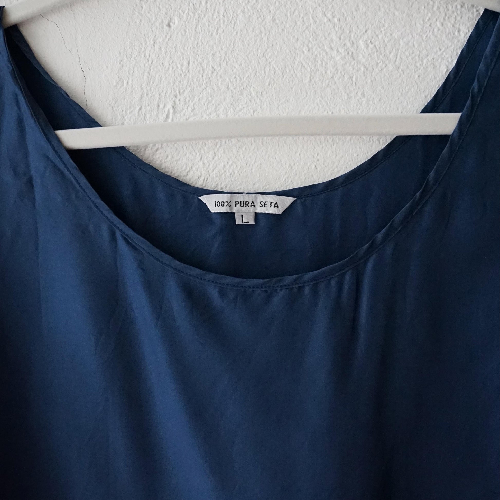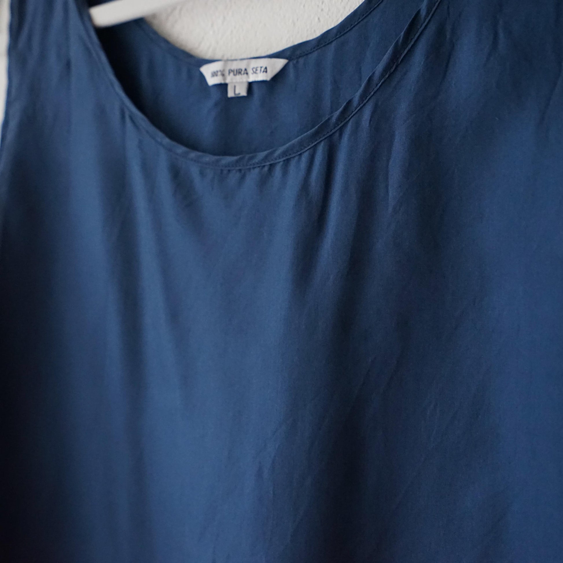 Vintage sleeveless blue top made out of 100% silk