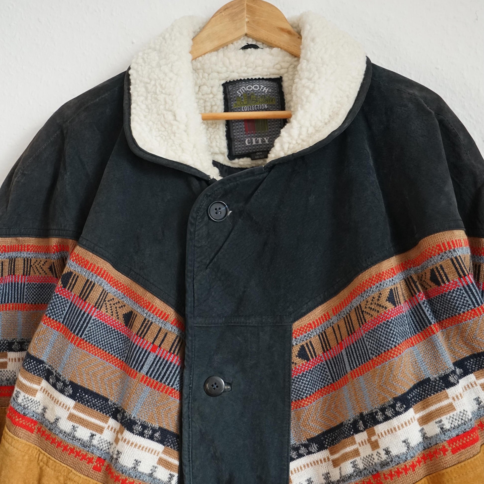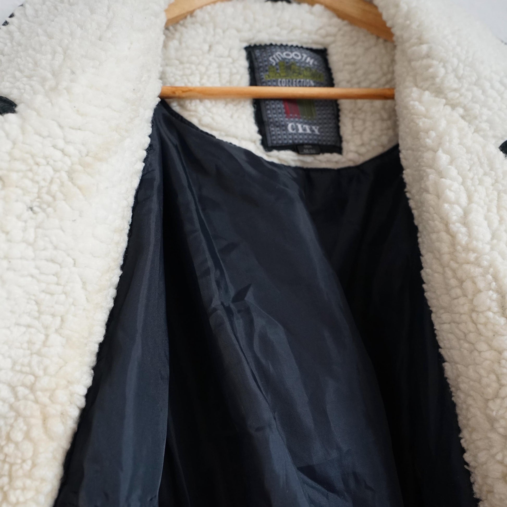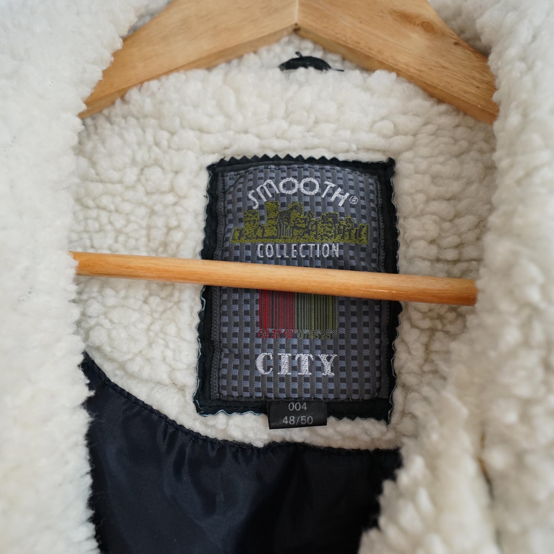 Vintage suede bomber jacket with white teddy details on collar and on collar and middle but not all inside the jacket