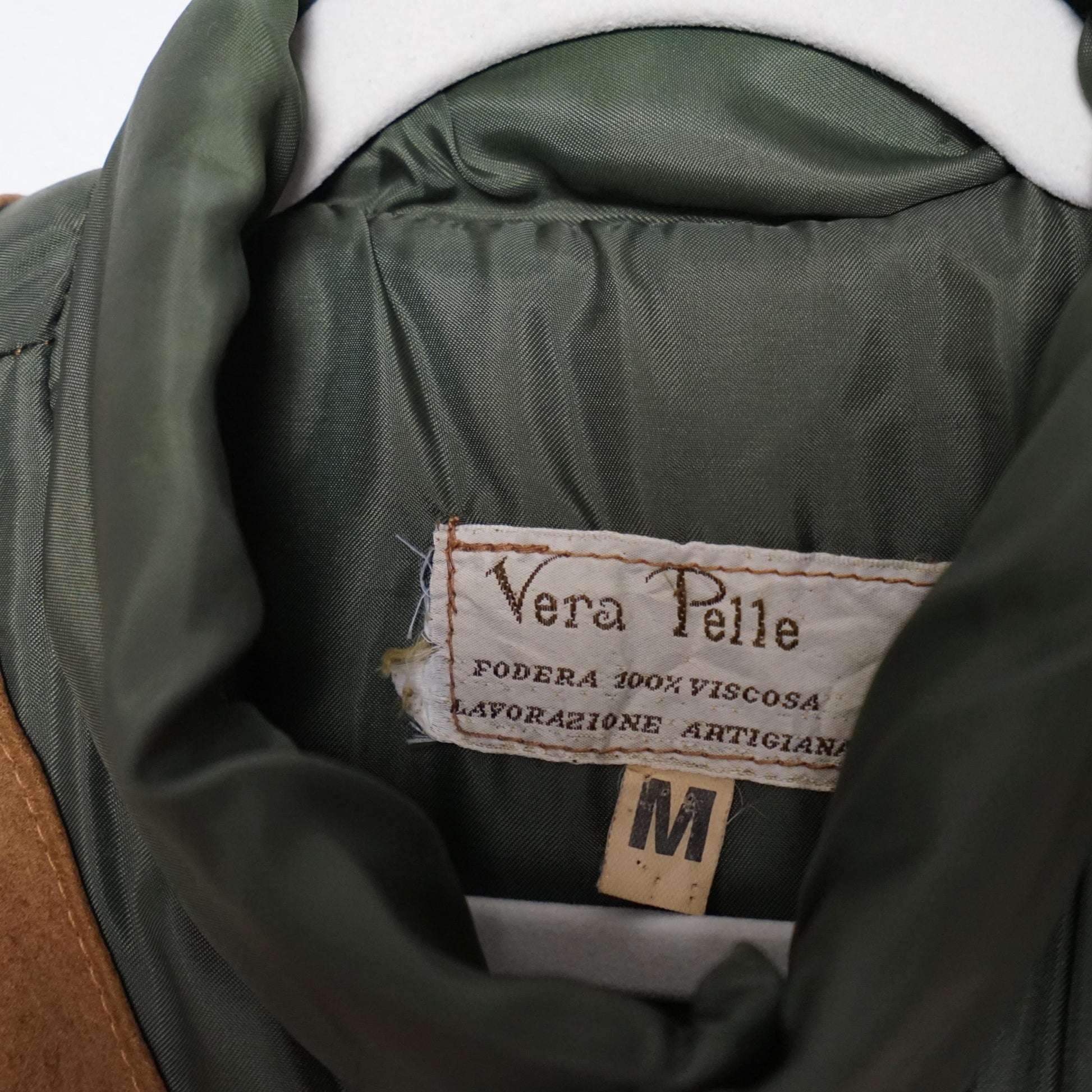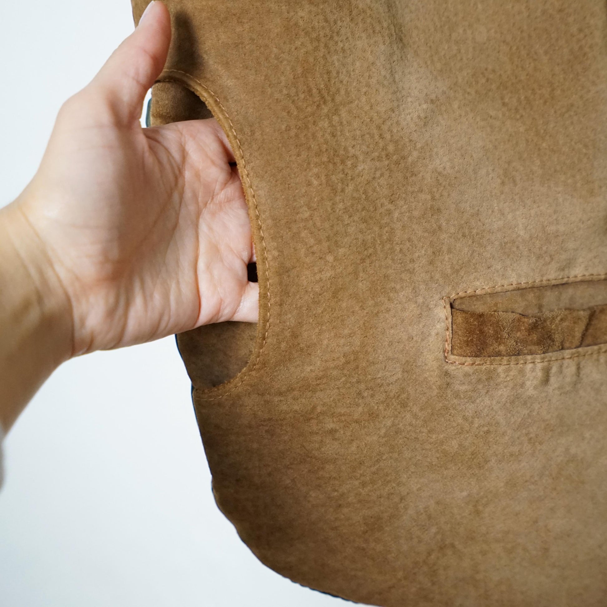 Vintage beautiful suede leather vest with a green lining inside to make it extra warm. It has a zipper and buttons for closure